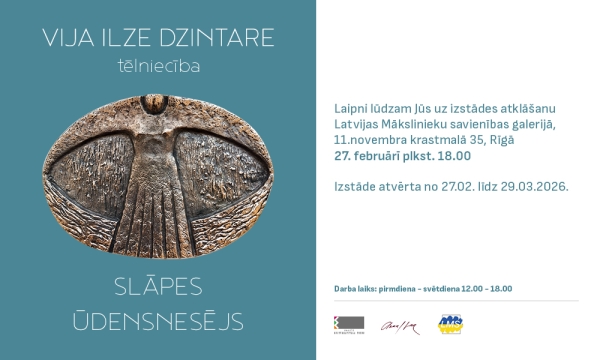 Latvijas Mākslinieku savienības galerijā, 11. novembra krastmalā 35, Rīgā 27. februārī plkst. 18.00 varam būt klāt tēlnieces, LOB biedres Vijas Ilzes Dzintares darbu izstādes SLĀPES ŪDENSNESĒJS atklāšanā. Lasīt vairāk ... |